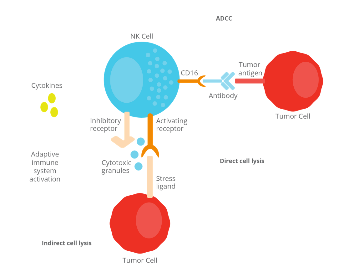 NK Cell เป็นเม็ดเลือดขาวชนิดหนึ่งที่มีความสามารถในการฆ่าเซลล์มะเร็งบางชนิดได้ดีมาก ทั้งในส่วนมะเร็งในระบบเลือด และในปัจจุบันได้มีการศึกษาความเป็นไปได้ในกลุ่มมะเร็งที่เกิดในลักษณะเนื้องอก (Oh S et al., 2019) จึงได้มีการรักษาโดยการให้ Activated NK Cell Therapy ซึ่งสามารถให้การรักษาในผู้ป่วยมะเร็งในระยะเริ่มต้นที่มีเป้าหมายให้หายจากโรค (Xie, S et al., 2019) โดยการรักษาร่วมกับการรักษามาตรฐาน อาทิ เคมีบำบัดแบบมาตรฐานหรือร่วมกับการใช้ยาชนิดใหม่ในกลุ่ม Targeted Therapy เพื่อเพิ่มประสิทธิภาพผลลัพธ์ของการรักษาให้ได้ผลดียิ่งขึ้น โดยไม่มีผลเสียต่อการรักษาหลัก ซึ่งการศึกษาพบว่ายาเคมีบำบัดหลายๆ ชนิดและยา Targeted Therapy จะทำให้เซลล์มะเร็งตอบสนองต่อ NK Cell ดีขึ้น รวมถึงทำให้ NK Cell ทำงานในการจับและทำลายเซลล์มะเร็งได้อย่างมีประสิทธิภาพมากขึ้นด้วยเช่นเดียวกัน